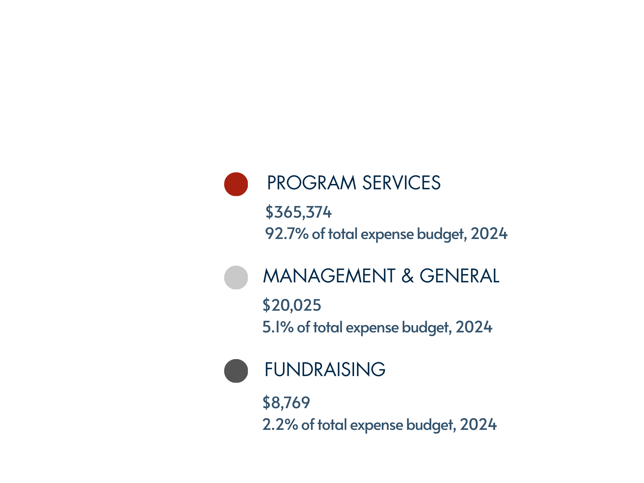 Quick takeaway: over 92% of funds support direct program services (events, veteran support, family assistance). Small portions cover necessary management and fundraising costs that allow the organization to operate responsibly and grow our reach.