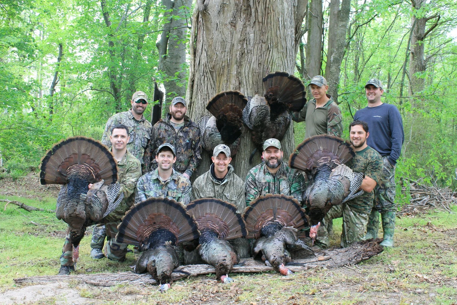 When Saturday morning rolled around we had one Warrior who had yet to bag a bird. Our mission was singular. Every man was leaving with a bird, period. Travis took him and one of the other guys to a nearby farm where 2 strutters had been seen the morning before. The rest of us fanned out to some other spots with one of the Warriors getting his second bird of the trip. But everyone’s minds were on the fourth quarter bird that needed to fall to round out the best weekend of turkey hunting all of us had ever seen. The birds on that farm didn’t show for Travis but he texted Josh with a plan. “Come to the farm and bring me the strutter decoy. We’ve got a bird hung up and we’re going to crawl him”. Josh and I raced to that farm and threw the strutter decoy to Travis and peeled back out to the road to watch what we hoped would be the most glorious ending to the weekend. Travis and the Warriors made haste through the woods separating them from the strutting turkey. He was with 3 hens which explains why he wasn’t eager to walk 600 yards through the woods to find one more. Josh and I watched from the road through our binoculars. We kept eyes on the strutting bird hoping he would stay put while they made their way to him. He strutted in circles for several minutes and we finally see the boys belly crawling out of the woods with that strutter decoy in front of them. You see, when a turkey won’t come to you the only options are to go home empty handed or try going to him. We were all out of time for option A. This bird was about to take a truck ride. We see the guys crawling quickly, trying to crest the ridge in the field so that this bird can see them. I am 300 yards away in the truck but if you judged my breathing I was laying behind the decoy myself. Turkeys just do that to me. They slid to the top of the hill and as the fan on the decoy came into sight of that dominant bird, Josh and I both started freaking out. This bird dropped strut 150 yards from the guys and ran dead at them until they popped up from behind the decoy and showed ol’ boy what it’s like to come face to face with a Marine at 5 yards. The shot rang out and you would have thought that we won the lottery sitting in that truck. I think we’re both still sore from punching each other. A storybook ending to the greatest weekend ever.